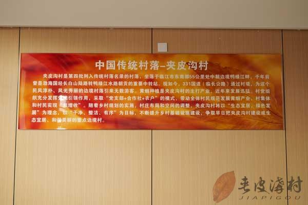 夾皮溝村是第四批列入傳統村落名錄的村落,坐落于臨江市東南部55公里處中朝邊境鴨綠江畔,千年前曾是渤海國經長白山陸路轉鴨綠江水路朝貢的重要中轉站。現如今,331國道(臨長公路)通過村境,為這個民風淳樸、風光秀麗的邊境村落引來無數游客。黃煙種植是夾皮溝村的主打產業,近年來發展迅猛。村黨組織充分發揮端建引領作用,采取“黨支部+合作社+農戶”的模式,帶動全體村民規范發展黃煙產業,村集體和村民實現“雙增收”。隨著鄉村規劃的實施,村莊布局和空間的調整,夾皮溝村將以“生態宜居,綠色發展”為理念,以“干凈、整潔、有序”為目標,不斷提升鄉村基礎設施建設,爭取早日把夾皮溝村建設成生態宜居、和諧美麗的重點邊境村。